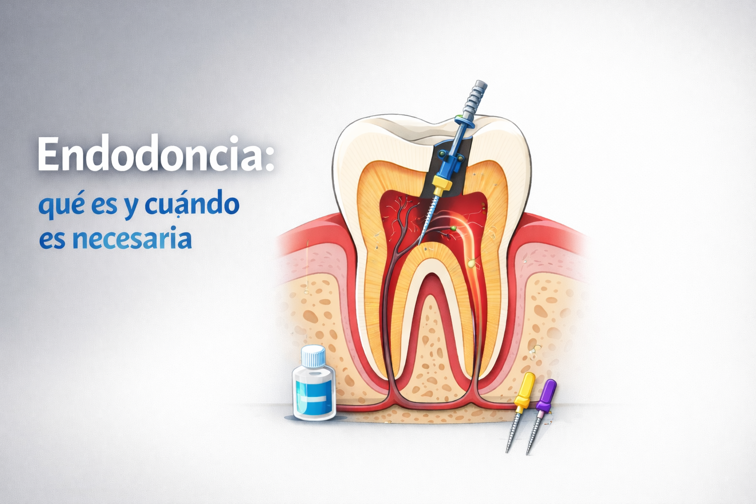 La endodoncia consiste en eliminar la pulpa dental dañada o infectada. Este tejido, situado en el interior del diente, contiene nervios y vasos sanguíneos, y cuando se inflama o se infecta puede provocar dolor intenso, sensibilidad o incluso complicaciones más severas si no se trata a tiempo. El tratamiento se basa en: